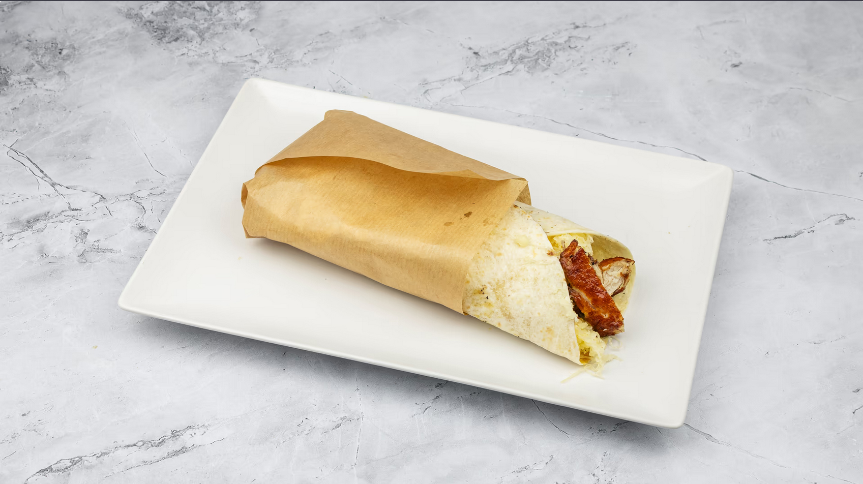 (tortilla, saláta, paprika, paradicsom, lilahagyma, uborka, grillezett csirkemell csíkok, majonéz, mézes-mustáros öntet, reszelt sajt)